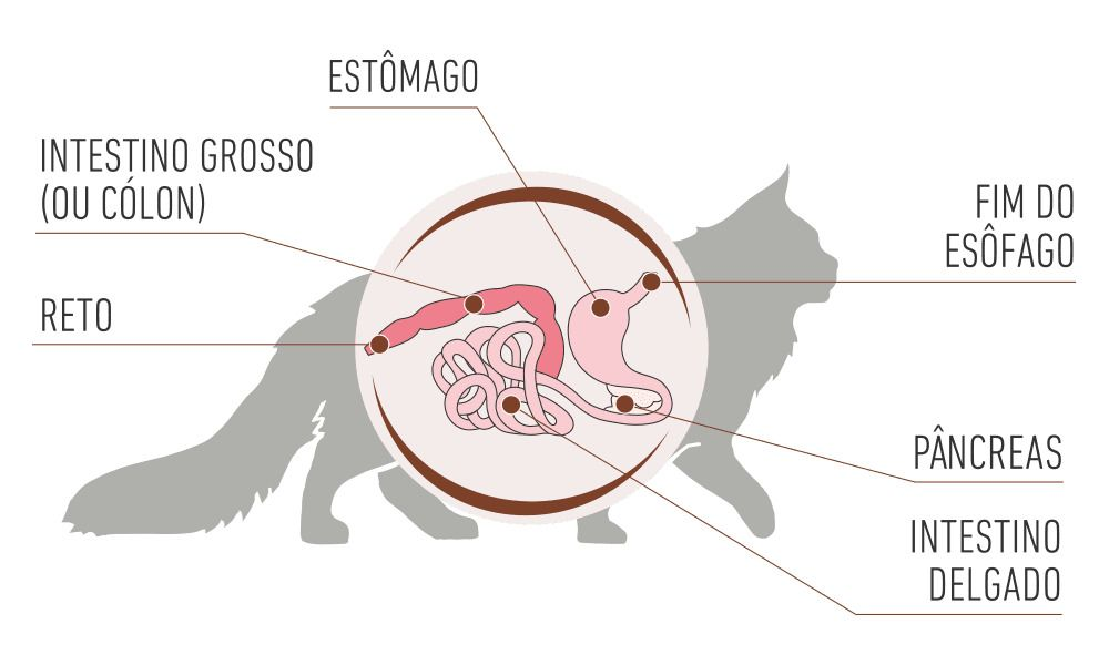 O trato gastrointestinal é composto pela cavidade oral, esôfago, estômago, intestinos delgado e grosso, reto, ânus e orgãos suplementares, como o pâncreas e o fígado.