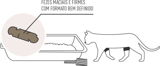 As fezes de gatos adultos saudáveis costumam ter aspectos bem definidos: