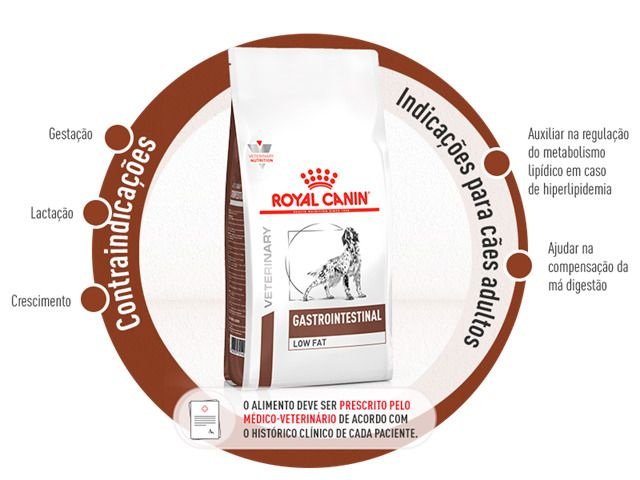 Gastrointestinal Low Fat é um alimento coadjuvante seco indicado para cães adultos, formulado com o objetivo de auxiliar na regulação do metabolismo lipídico em caso de hiperlipidemia, e como compensação pela má digestão. Ingredientes de alta digestibilidade. Baixo teor de gordura e alto teor de ácidos graxos essenciais.
