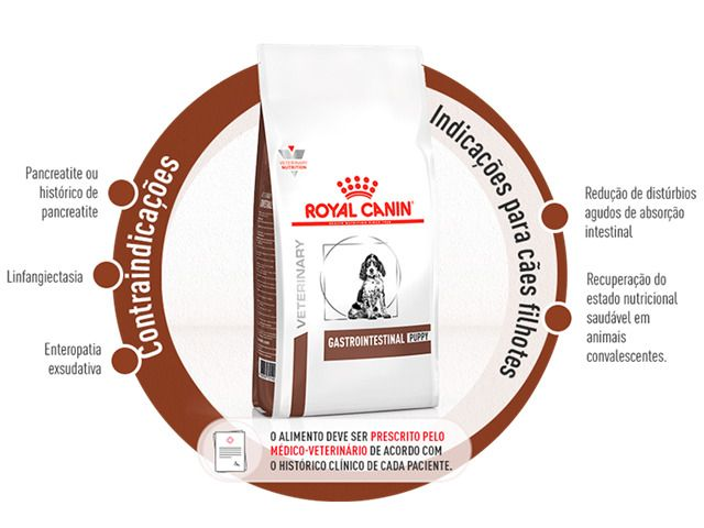 O alimento ROYAL CANIN® Gastrointestinal Puppy foi criado para cães filhotes com distúrbios digestivos. Busque apoio de um Médico-Veterinário para amparar e informar sobre o assunto.