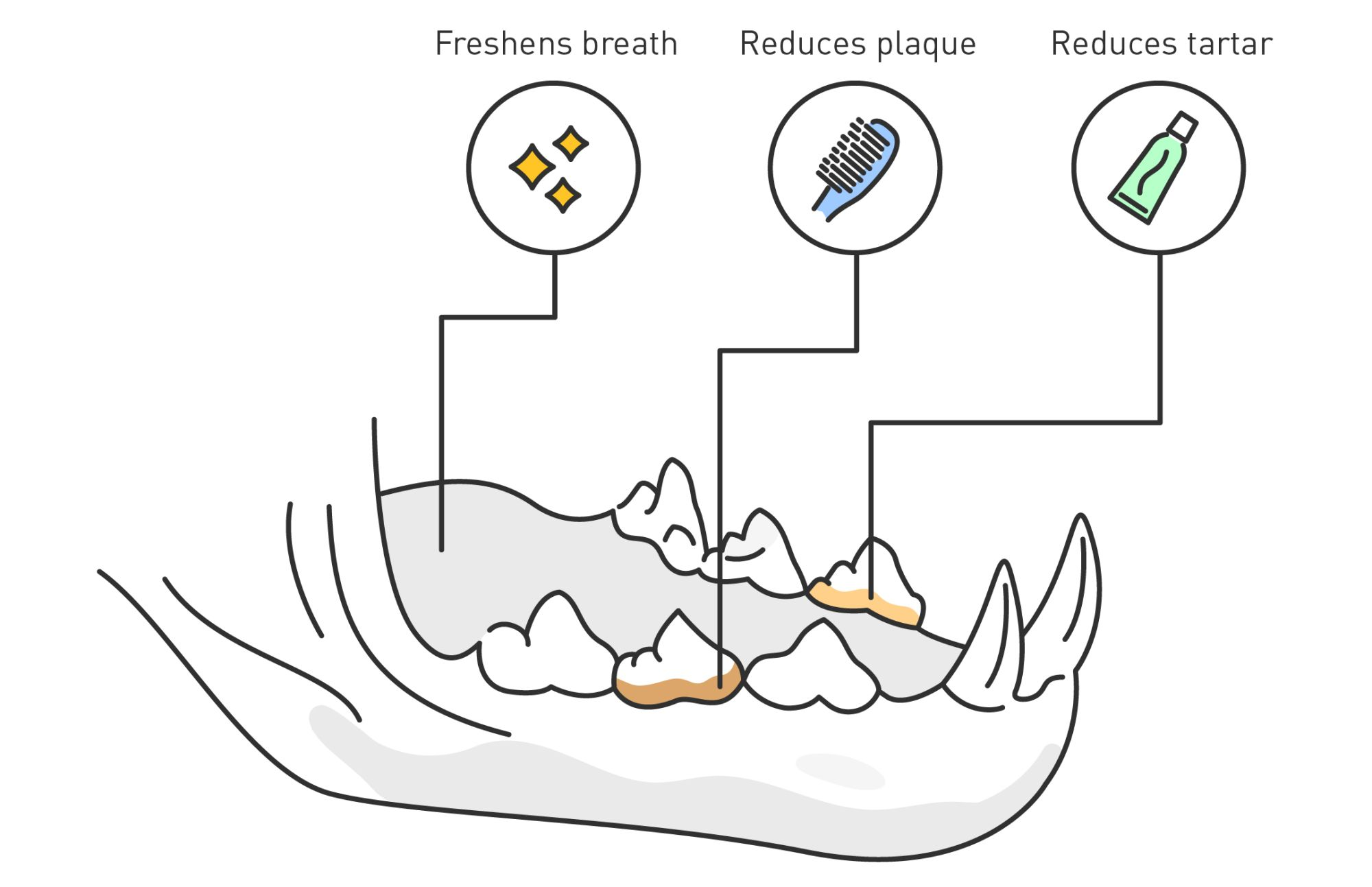 - A mechanical scrubbing action - Dental kibble has been created to withstand deeper tooth penetration to create a scrubbing action - similar to that of a toothbrush.