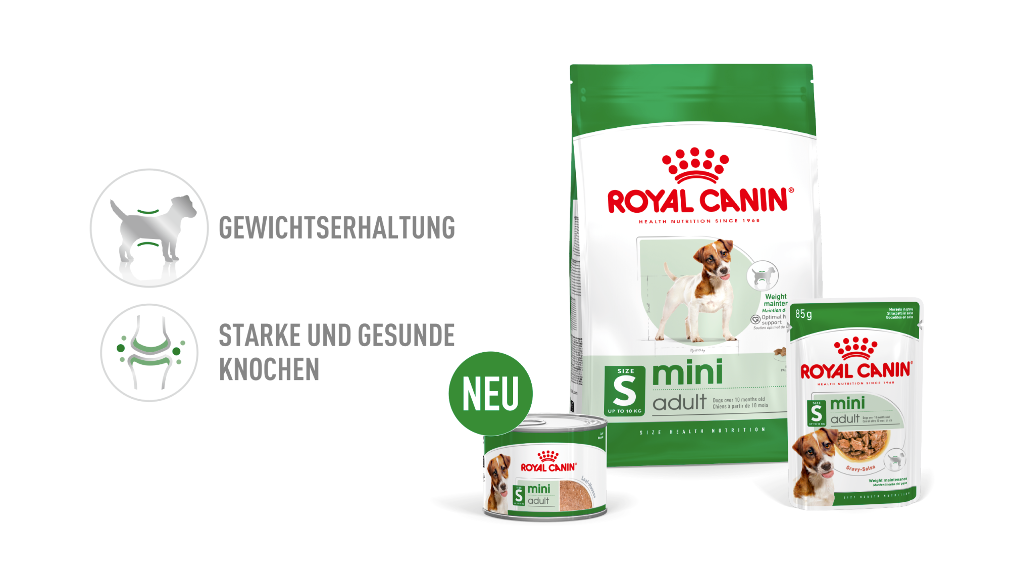 Kleine Hunde haben eine Lebensfreude, die ihre Größe nicht vermuten lässt. Ihr hohes Energiepensum erfordert daher einen hohen Bedarf an Nährstoffen. Unsere MINI Nahrungen aus der ROYAL CANIN® Size Health Nutrition Produkreihe sind sorgfältig auf die speziellen Bedürfnisse kleiner Hunde zugeschnitten.