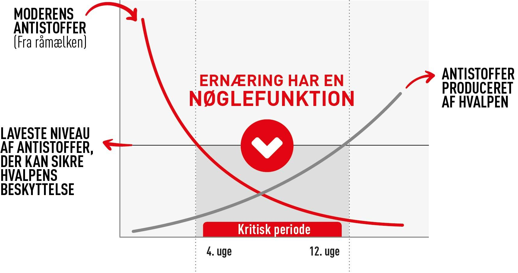 Det er en sårbar fase, hvor antistofferne som hvalpen får fra modermælken ikke længere yder nok beskyttelse, og hvalpens eget immunsystem endnu ikke er modent nok til at tage over – hvilket gør den endnu mere udsat for infektioner. Faktisk er denne unikke periode så kritisk, at man siger, at hvalpen har immunitetsmangel, og perioden forekommer normalt i 4-12-ugersalderen.