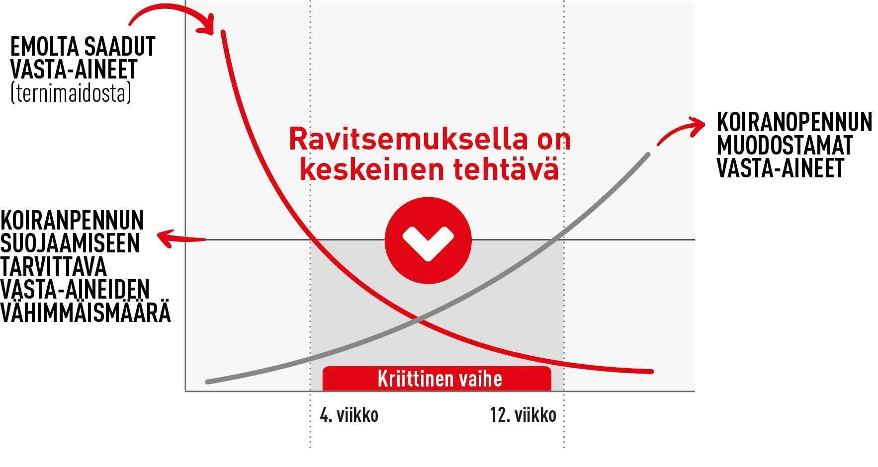 Tänä aikana koiranpennun kypsymätön immuunijärjestelmä tarvitsee tukea, jotta se pystyy suojaamaan koiranpentua bakteereja ja muita taudinaiheuttajia vastaan ja tukemaan pennun rokotusprotokollaa.