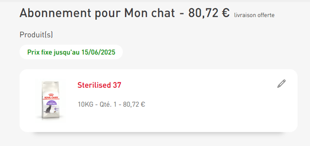 Dans la section dédiée au produit de l'abonnement sélectionné, vous trouverez un texte en vert indiquant la date de fin de la période de garantie des prix fixes. Cette date précise jusqu'à quand vos prix sont garantis sans augmentation.