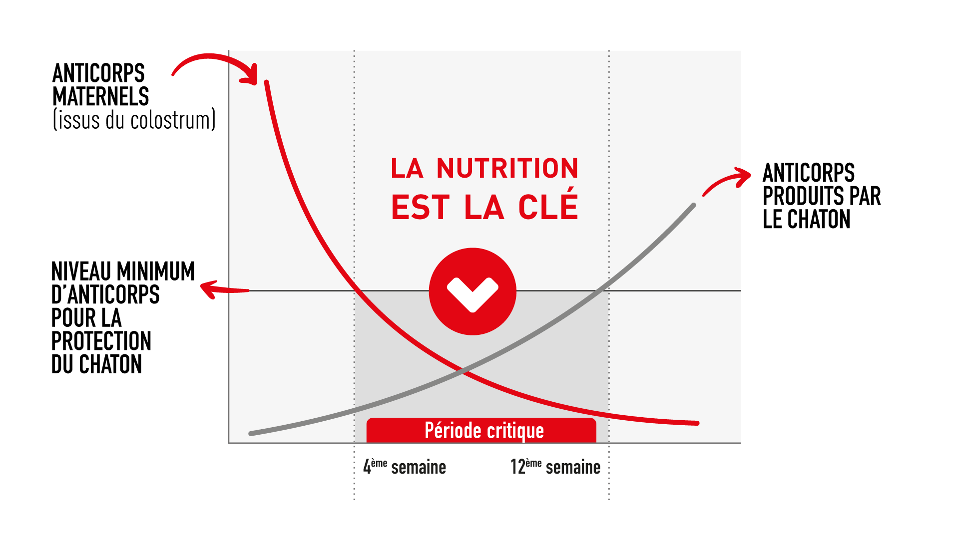 Parce que la protection que les chatons reçoivent de leur mère ne dure pas éternellement. C'est comme un bouclier temporaire qui leur donne un coup de pouce dans la vie, mais la protection diminue progressivement après 5 à 6 semaines. Le premier vaccin de votre chaton l'aidera à se protéger, à l'âge adulte, contre les maladies les plus dangereuses (comme la panleucopénie - le typhus du chat - et le coryza), mais son petit corps ne "répond" pas aux vaccins avant l'âge de 2 mois environ. Il existe donc une période de vulnérabilité appelée "déficit immunitaire", pendant laquelle le chaton a perdu une grande partie de la protection apportée par sa mère, mais n'est pas encore protégé par les vaccins et par ses propres anticorps.