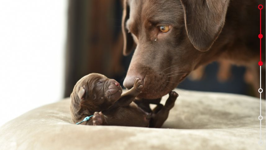 En règle générale, il est toujours préférable de laisser la mère s'occuper de ses chiots. Oui, c'est la mère qui sait le mieux ! Si vous remarquez que l'un d'entre eux a du mal à trouver le chemin du lait, guidez-le lentement, mais n'insistez pas, car cela pourrait stresser la mère et rompre le lien qu’elle a avec sa portée.