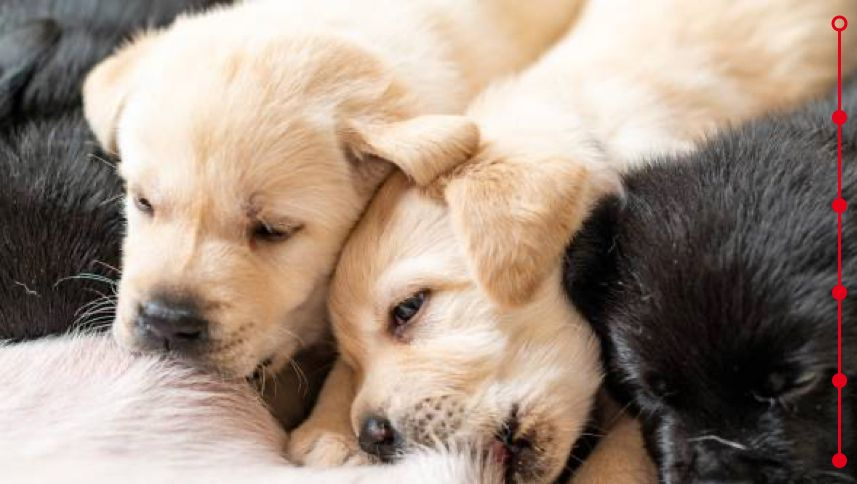 Pour surveiller s’il grandit bien, il est important de peser régulièrement votre chiot. Pour différencier les chiots, vous pouvez utiliser des rubans de différentes couleurs. Pas d'estimation au hasard ! Tous les jours à la même heure pendant deux semaines, pesez vos chiots à l'aide d'une balance précise et notez leur poids. C'est le moyen le plus efficace de vous assurer, que vos chiots prennent le poids nécessaire à une bonne croissance. Votre vétérinaire vous aidera à connaître le poids idéal de croissance de leur race.