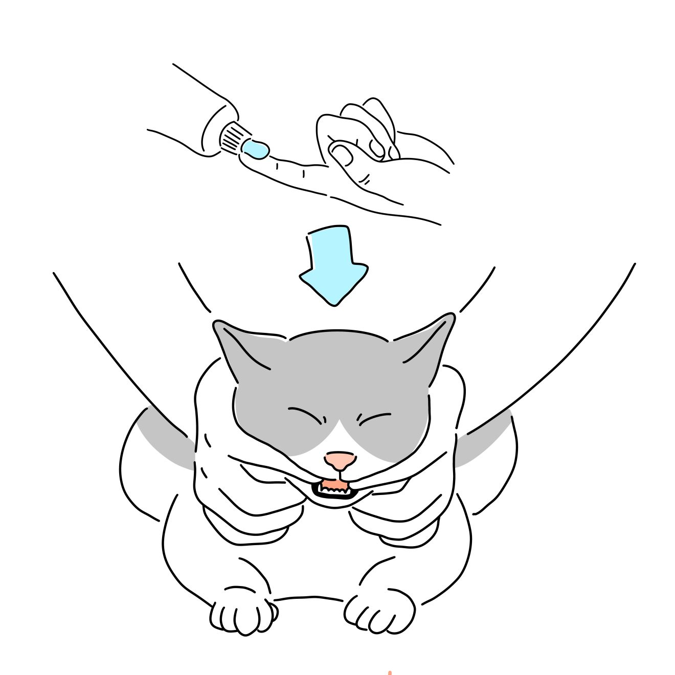 步驟二接下來,以手指沾取少量寵物牙膏。微微向上拉起貓咪嘴唇,將牙膏塗抹於牙齒上,輕輕按摩。慢慢清潔整個口腔,過程中持續按摩牙齦及牙齒。 小提醒:由於還在適應階段,飼主操作時應注意安全,避免被貓咪咬傷。若貓咪持續有強烈的排斥感,應諮詢獸醫並調整刷牙方式。 |