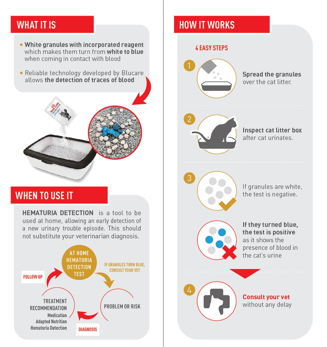 - HEMATURIA DETECTION IS A TOOL WHICH ENABLES EARLY DETECTION OF BLOOD IN A CAT’S URINE MAKING URINARY HEALTH MANAGEMENT EASIER