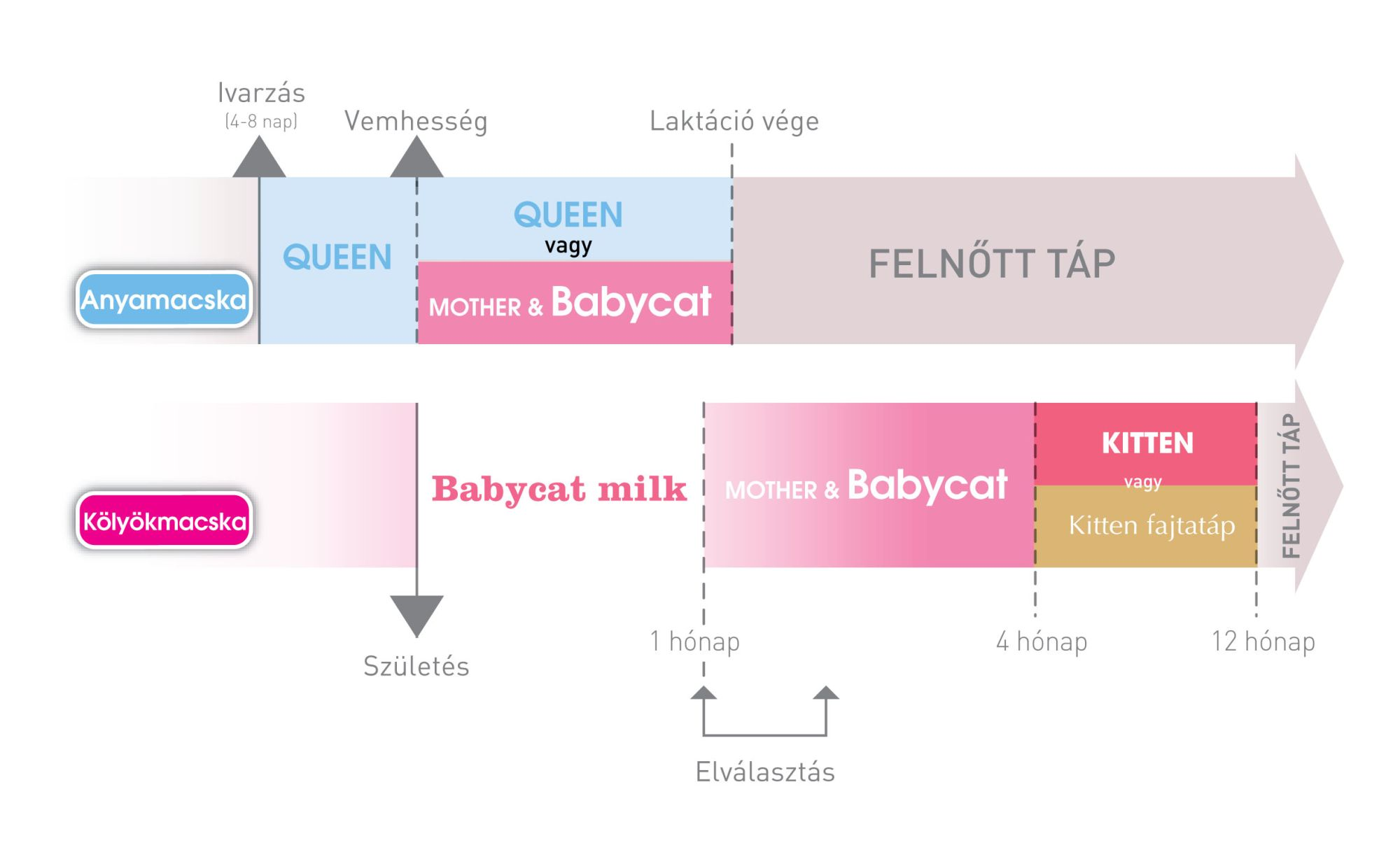 A Queen egyedülálló tápanyag-összetételének köszönhetően tökéletesen megfelel a szaporodási ciklusban lévő nőstény macskák számára, az ivarzás 1. napjától kezdve, a vemhesség idején, és a szoptatás végéig.