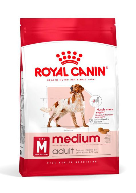 ROYAL CANIN MEDIUM dog food helps maintain natural defenses and sustain energy levels of a variety of medium-sized dogs that weigh 23-55 pounds.