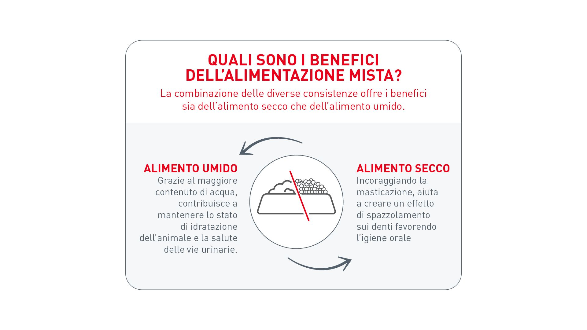 Il mix feeding o “alimentazione mista” offre i benefici dell’alimento secco associato a quello umido e incoraggia il consumo dei pasti offrendo al tuo gatto una varietà di consistenze e profili aromatici.