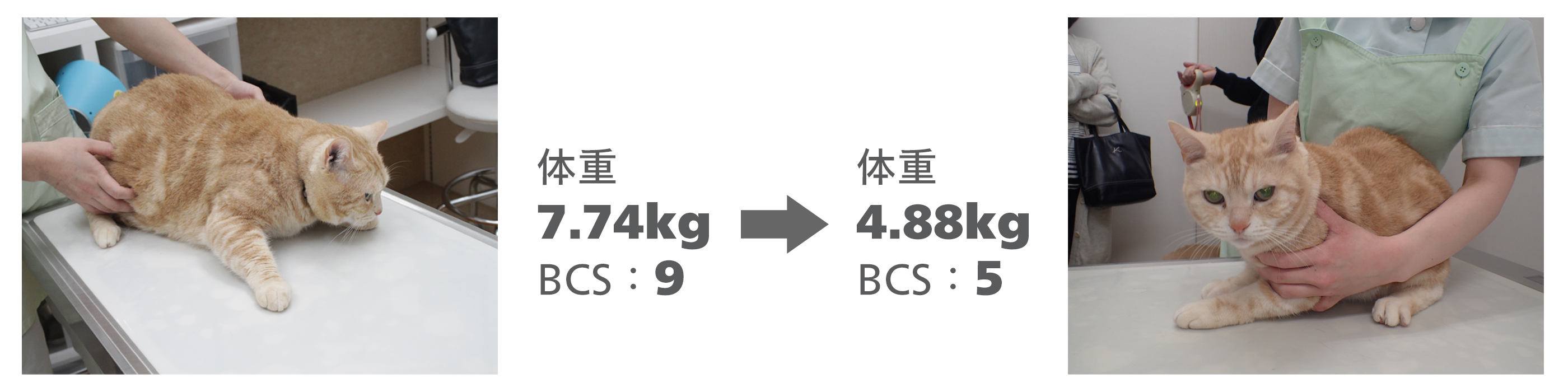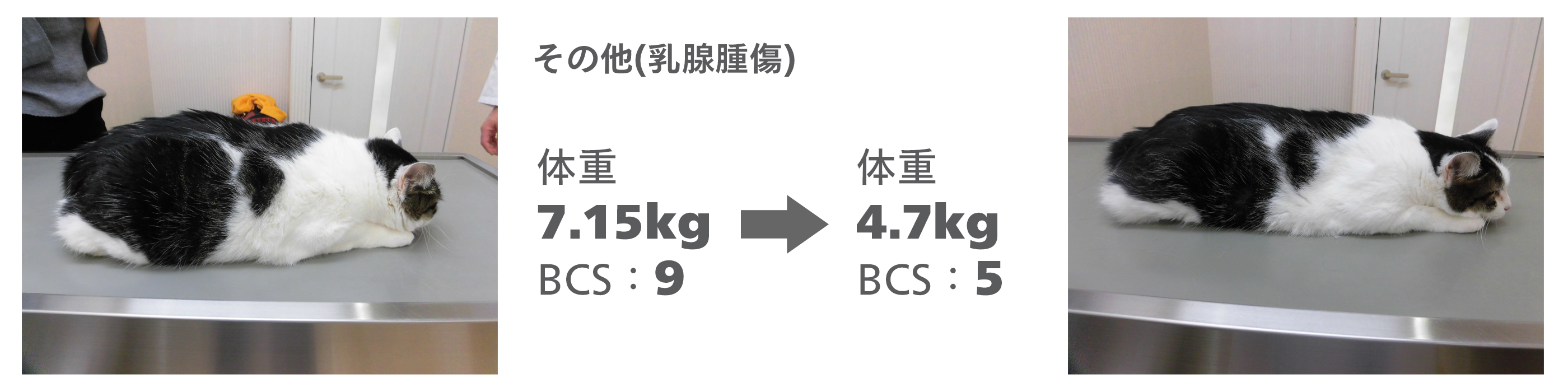 去勢手術後に5㎏から7㎏に増加してしまい、ダイエットに取り組み頑張りました。現在は5㎏を維持しています。