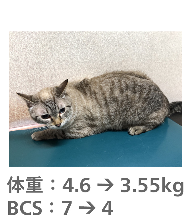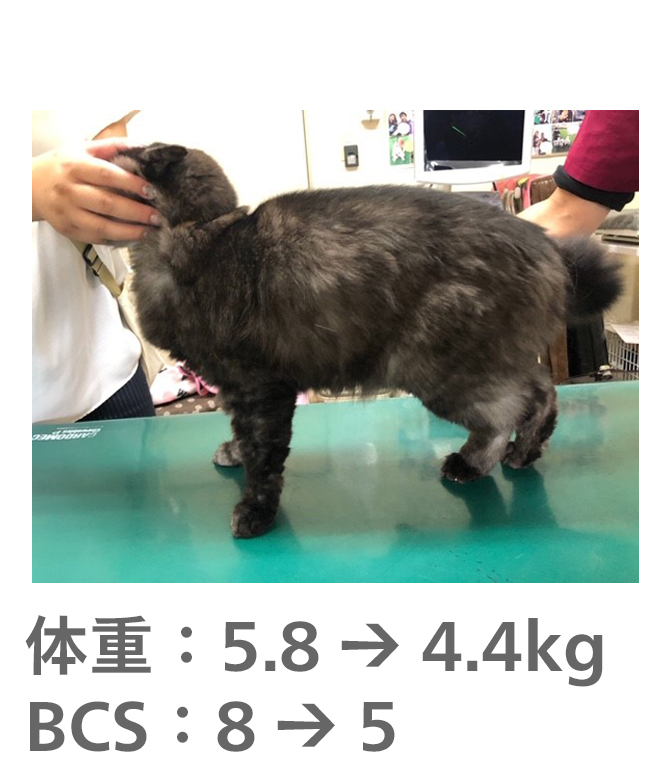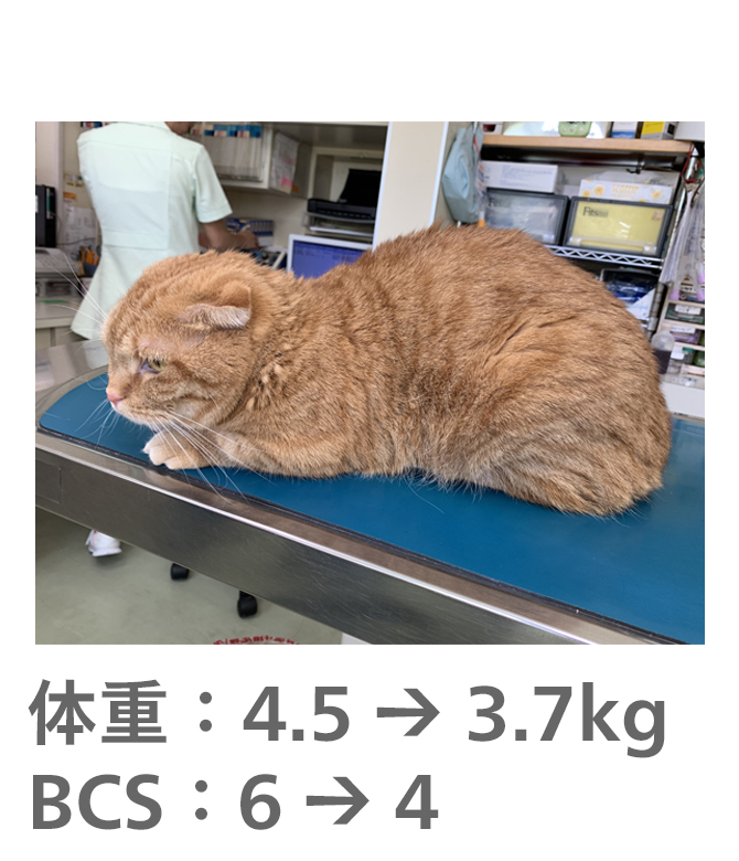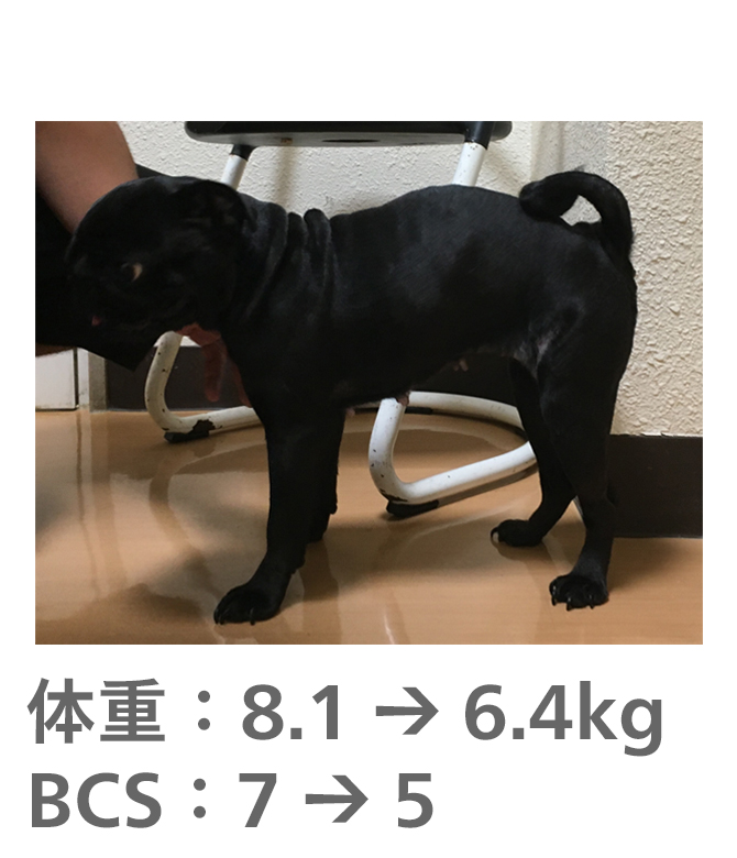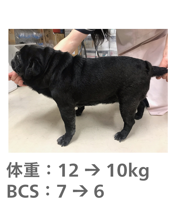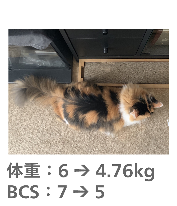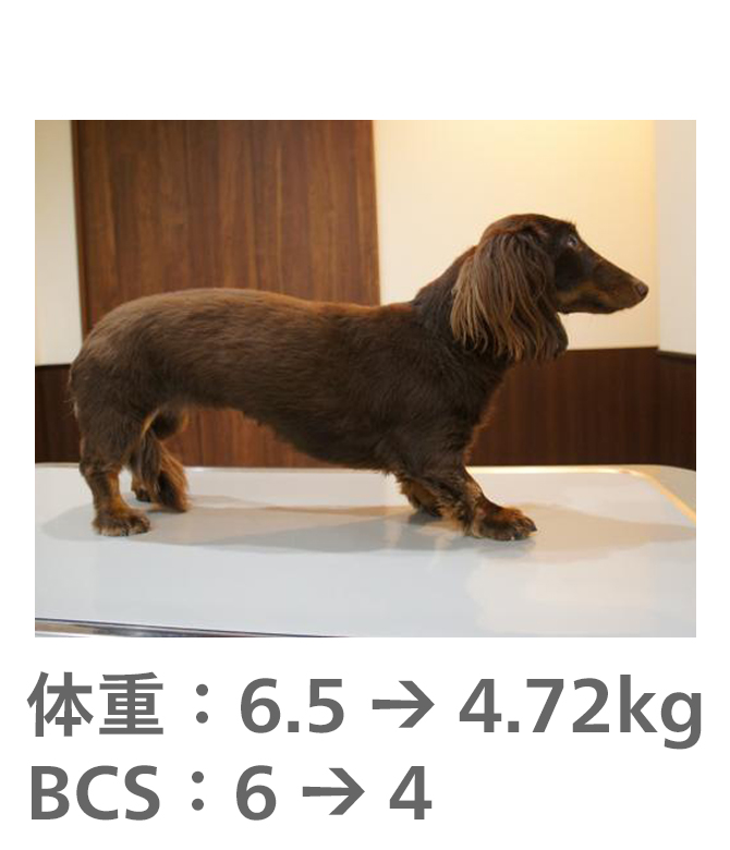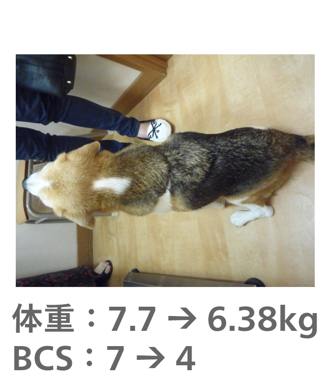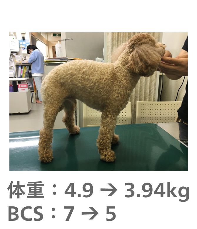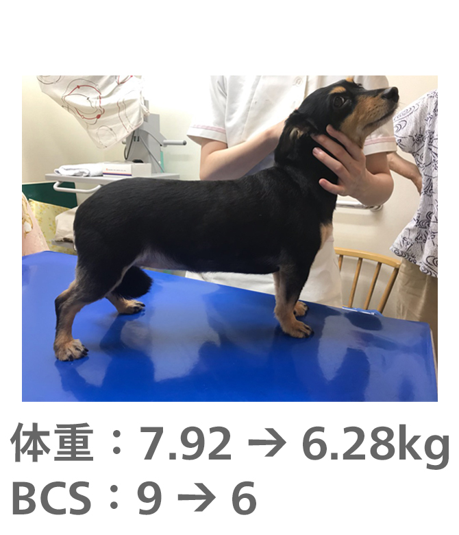 飼い主様がきちんとフードのコントロールをしてもらえたので、理想体重まで減量することができました。