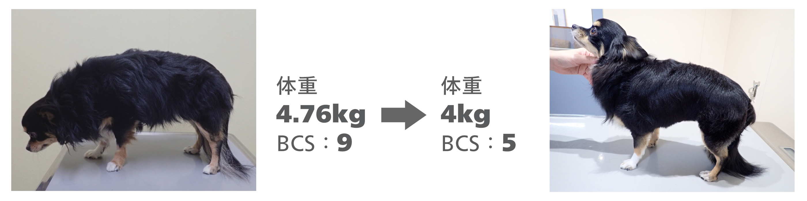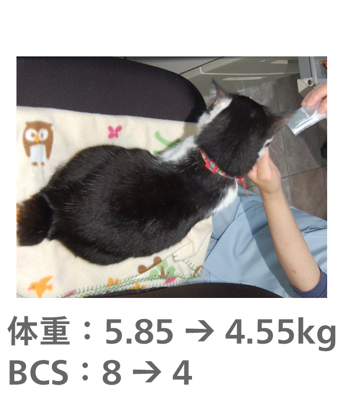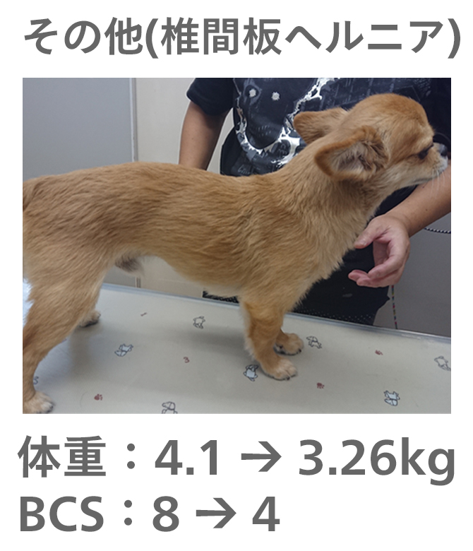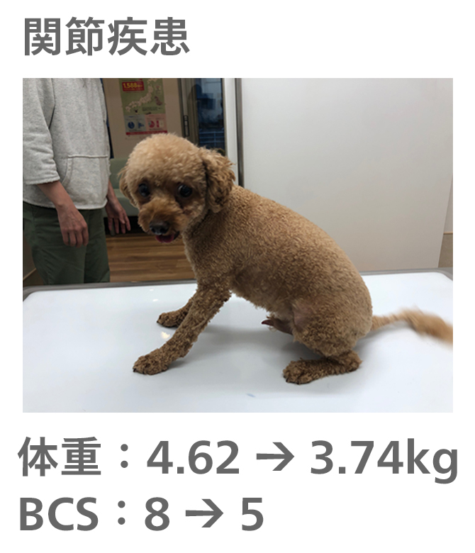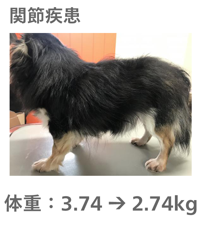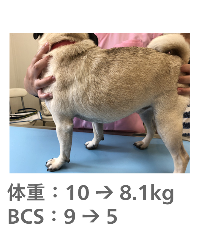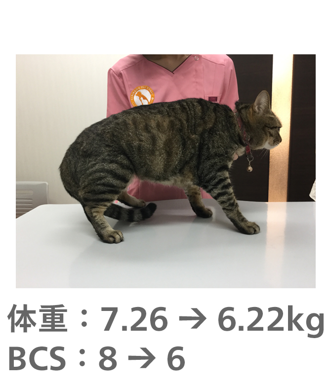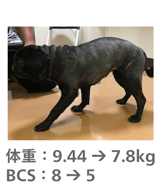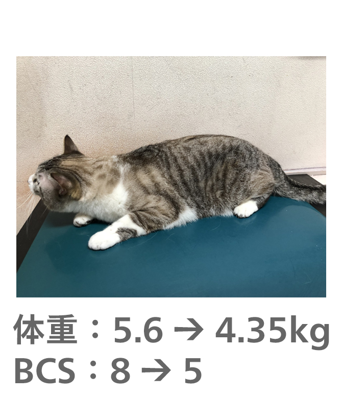 飼い主様がきちんとフードのコントロールをしてもらえたので、理想体重まで減量することができました。