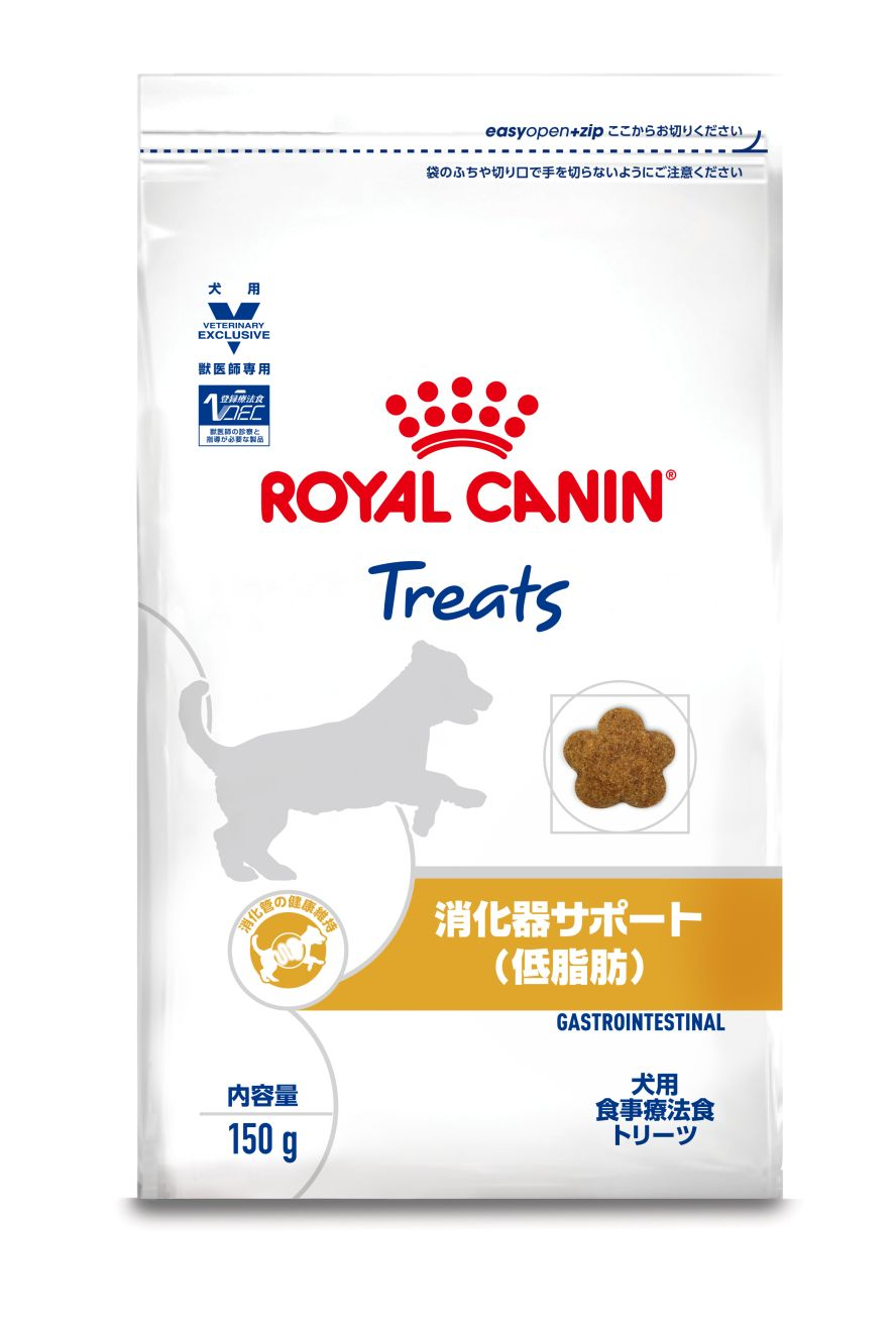 消化器疾患を呈する犬に給与することを目的として、脂肪および食物繊維などの量を調整し、超高消化性の原材料を使用したトリーツで