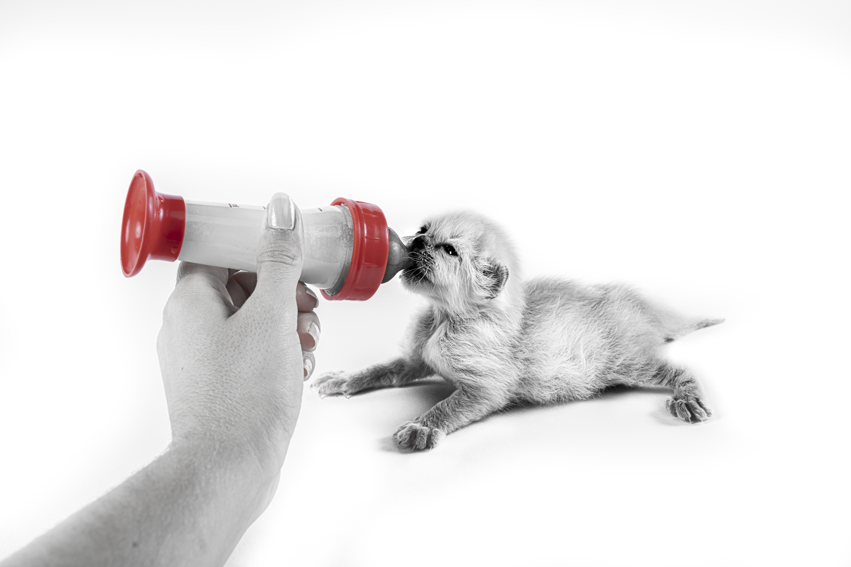 保護した子猫の目や耳が開いていない場合は、固形食は食べられず、ミルクが必要となります。