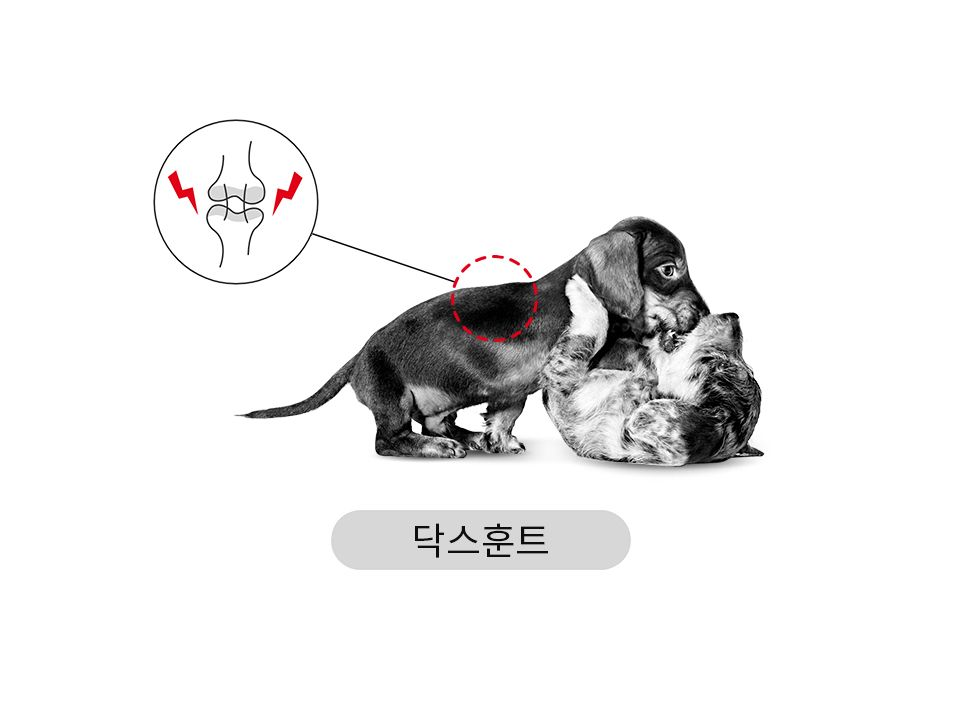 닥스훈트는 다리가 짧기 때문에 다른 견종에 비해 척추 관절이 받는 물리적 부담이 더 큽니다. EPA-DHA, 칼슘 및 인 성분이 함유된 식이는 뼈와 관절을 강화하는 데 도움이 됩니다.