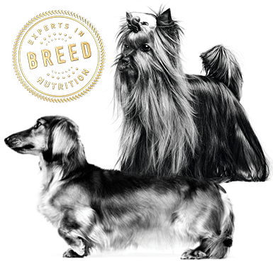 긴 허리와 짧은 다리의 닥스훈트는 관절 건강을, 우아하고 부드러운 피모의 요크셔테리어는 피모 건강을 위한 특별 영양이 필요합니다.