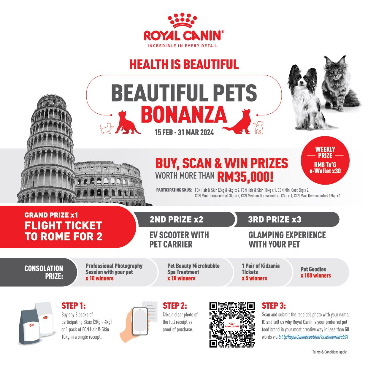Your purchase of Royal Canin Products could win you some beautiful gifts, such as a pair of tickets to Rome and more!