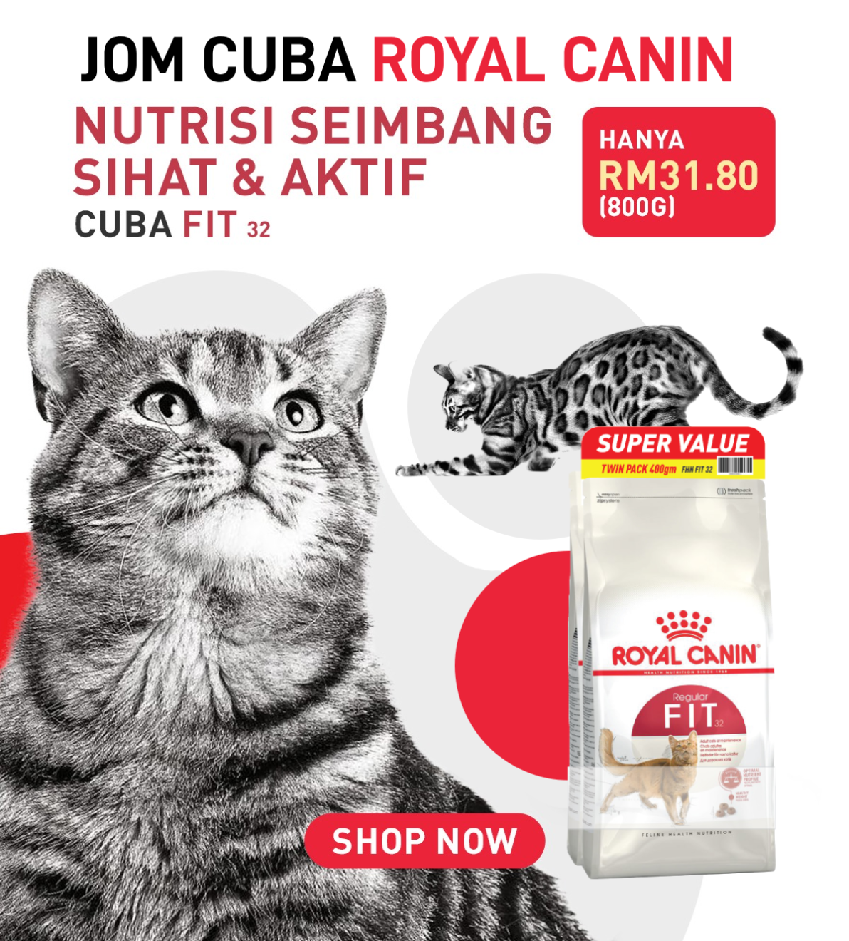 • Free Royal Canin Pet Food Supply worth MYR188 (dry food pack size of 0.8kg to 4kg)