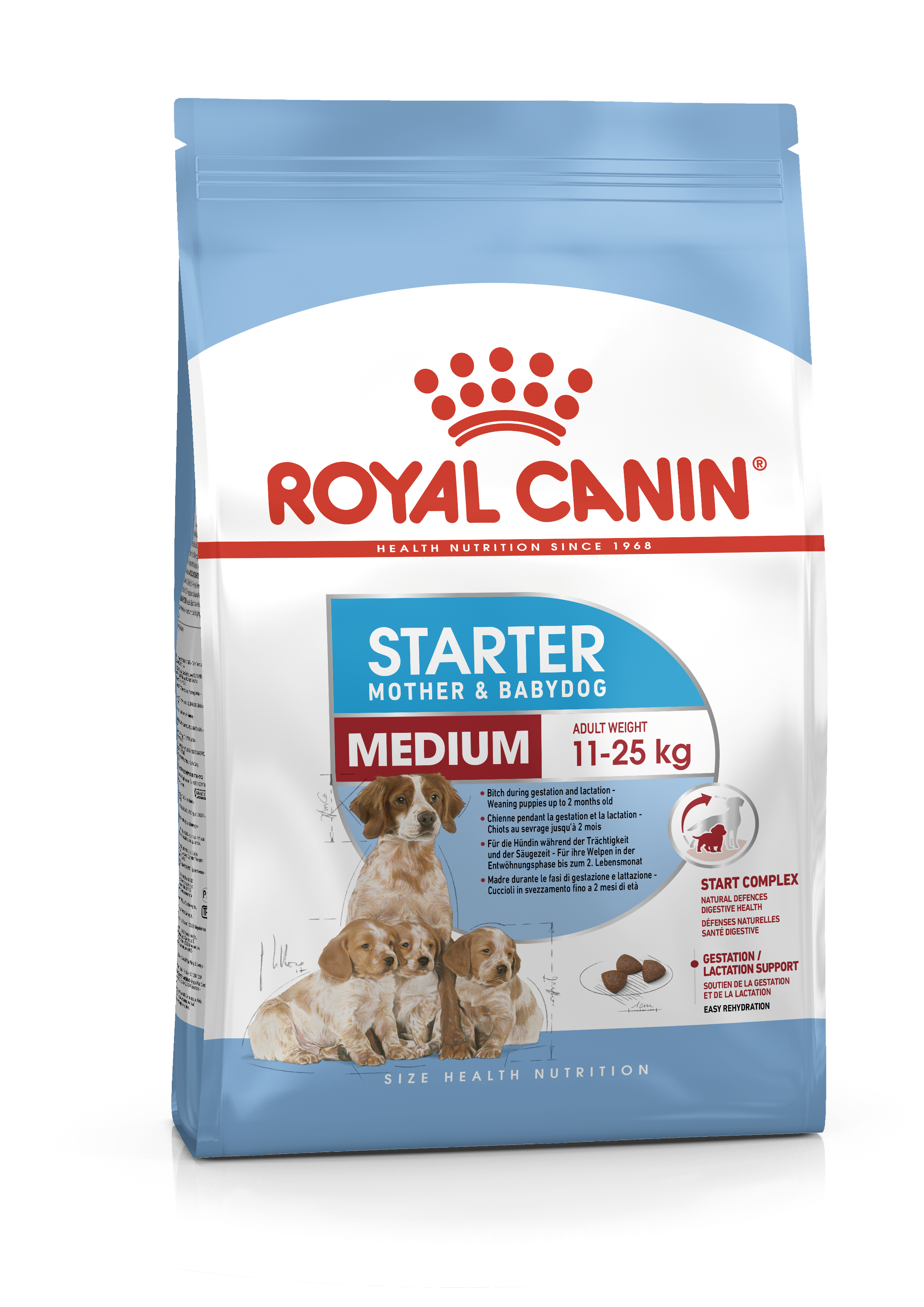 Począwszy od 6 tygodnia u ciężarnych suk istotnie wrasta zapotrzebowanie na energię, składniki mineralne i białko, w związku z intensywnym rozwojem płodów oraz przygotowaniem organizmu do laktacji. Jednocześnie wydajność przewodu pokarmowego spada, głównie z powodu coraz większych rozmiarów macicy która uciska jelita. W tym ważnym czasie suka potrzebuje właściwie zbilansowanej, wysoko skoncentrowanej karmy o podwyższonym poziomie składników pokarmowych i energii, np. karmy STARTER lub STARTER MOUSSE.