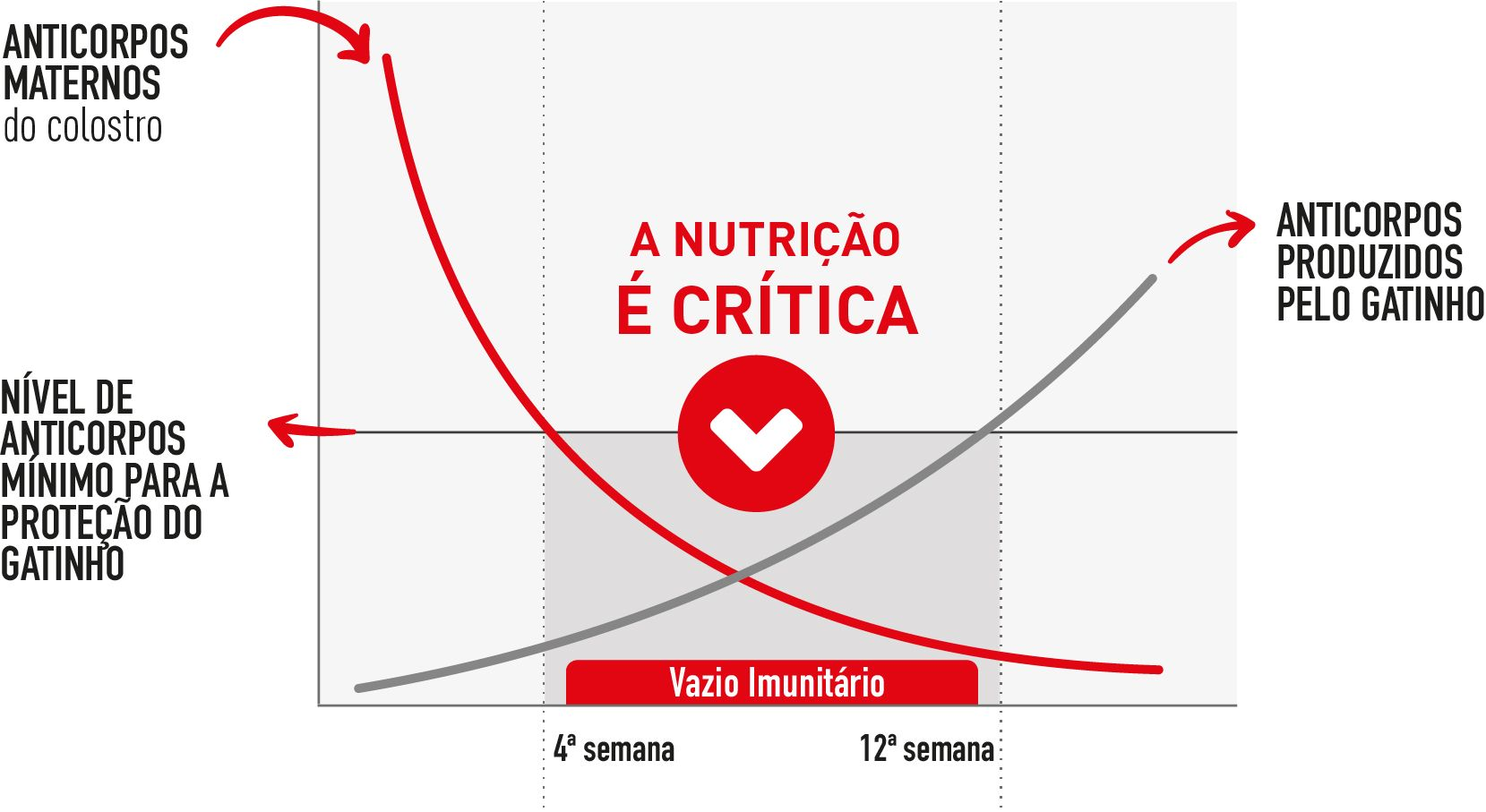 A qualidade do alimento do seu gatinho pode desempenhar um importante papel no suporte ao seu sistema imunitário, e pode tornar o "vazio imunitário" muito mais fácil de gerir. O alimento certo, especialmente elaborado com nutrientes-chave, tais como antioxidantes e prebióticos (alimento para as bactérias intestinais benéficas), pode ajudar o seu gatinho, contribuindo para reforçar as suas defesas naturais.