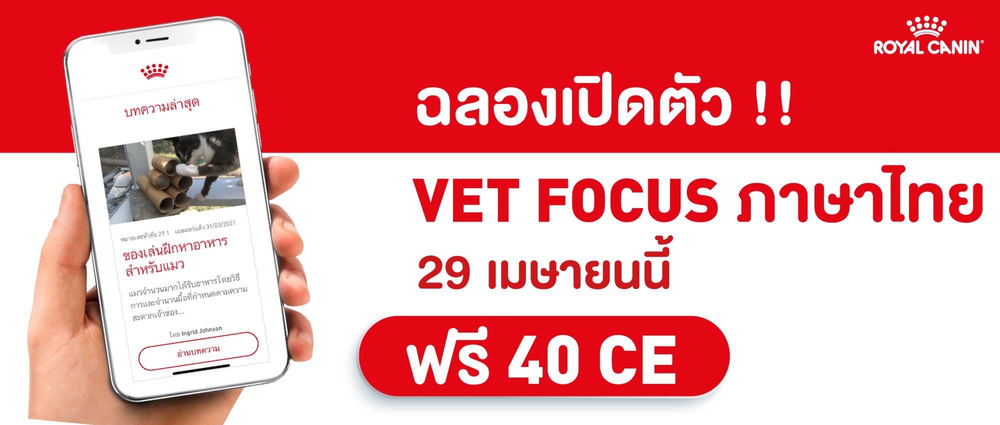 ในปัจจุบันมีสัตวแพทย์กว่า 300,000 ท่านที่มีความสำคัญในการดูแลสุนัขและแมวทั่วโลก โรยัลคานินอยากเป็นส่วนหนึ่งที่ทำให้สัตวแพทย์ทุกท่านสามารถเข้าถึงข้อมูลข่าวสารเกี่ยวกับนวัตกรรมและงานวิจัยล่าสุดเพื่อพัฒนาการดูแลรักษาแมวและสุนัขได้ทุกเมื่อโดยไม่เสียค่าใช้จ่ายผ่านVetFocus Online Vet Focus คือวารสารเชิงวิชาการและการบริหารธุรกิจคลินิกสัตว์เลี้ยงที่เริ่มต้นตีพิมพ์บทความจากศูนย์วิจัยWalthamในประเทศอังกฤษตั้งแต่ปี1990และเป็นที่รู้จักกันอย่างต่อเนื่องภายใต้การดูแลของ โรยัล คานิน ในชื่อ VetFocus ตั้งแต่ปี2003จนถึงปัจจุบัน และถูกแปลมากกว่า 8ภาษาทั่วโลกเพื่อให้ได้เนื้อหาที่มีประโยชน์และทันต่อเหตุการณ์กองบรรณาธิการได้รวบรวมนักเขียนผู้ทรงคุณวุฒิและวิทยากรกว่า 80ท่านจากทั่วทุกมุมโลกมาร่วมแบ่งปันความสนใจ ความหลงใหล แนวคิดเชิงนวัตกรรมและถ่ายทอดประสบการณ์พร้อมข้อมูลความรู้เชิงลึกจากงานวิจัยน่าเชื่อถือสำหรับการเปิดตัวเว็บไซต์ภาษาไทยโรยัล คานิน สนับสนุนผู้ประกอบวิชาชีพสัตวแพทย์ในไทยโดยมอบคะแนน CEเพื่อใช้ประกอบการต่อใบอนุญาตประกอบวิชาชีพกว่า40คะแนนตลอดปี2564ด้วยเนื้อหาที่ครอบคลุมการดูแลระบบต่างๆ ของร่างกายของแมวและสุนัข เช่น ผิวหนัง ทางเดินอาหาร ไตนอกจากนี้ยังมีเนื้อหาเกี่ยวกับการดำเนินธุรกิจคลีนิคสัตวแพทย์อย่างไรให้ประสบความสำเร็จอีกด้วยโรยัลคานินเชื่อว่าการแบ่งปันและส่งต่อความรู้จะช่วยให้เราสามารถสร้างสรรโลกที่ดีกว่าให้กับแมวและสุนัขทั่วโลกเพราะแมวและสุนัขช่วยทำให้โลกใบนี้น่าอยู่ขึ้นกว่าเดิม