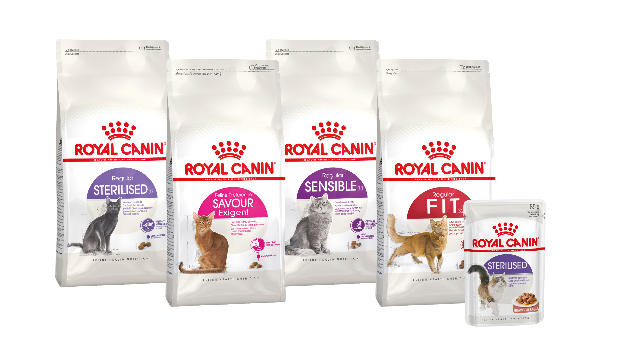 โรยัล คานิน เข้าใจถึงความแตกต่างของแมวแต่ละตัว นั่นเป็นเหตุผลว่าอายุ ไลฟ์ไตล์ หรือความต้องการพิเศษ เป็นส่วนสำคัญในการเลือกอาหารให้เหมาะสมกับแมวของคุณทั้งอาหารเม็ดและอาหารเปียก โรยัล คานินจึงมีโภชนาการที่เหมาะกับแมวที่มีความต้องการที่แตกต่างกัน
