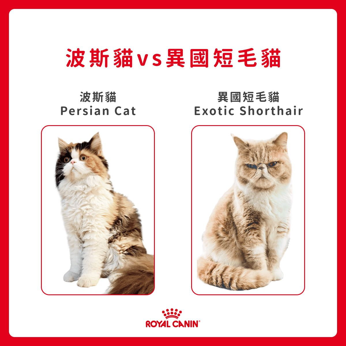 在網路查詢資料時,常常會看到短毛波斯貓,有著與波斯貓相似的扁鼻和囧囧的臉,唯一的差別在於毛變短了。