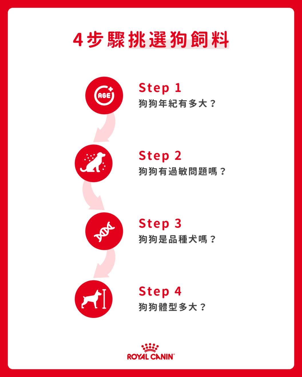 市面上的狗食有許多種類,但每隻狗狗的需求卻不同,本文將透過4個提問式的步驟,引導毛爸媽輕鬆選出適合的寵物飼料。