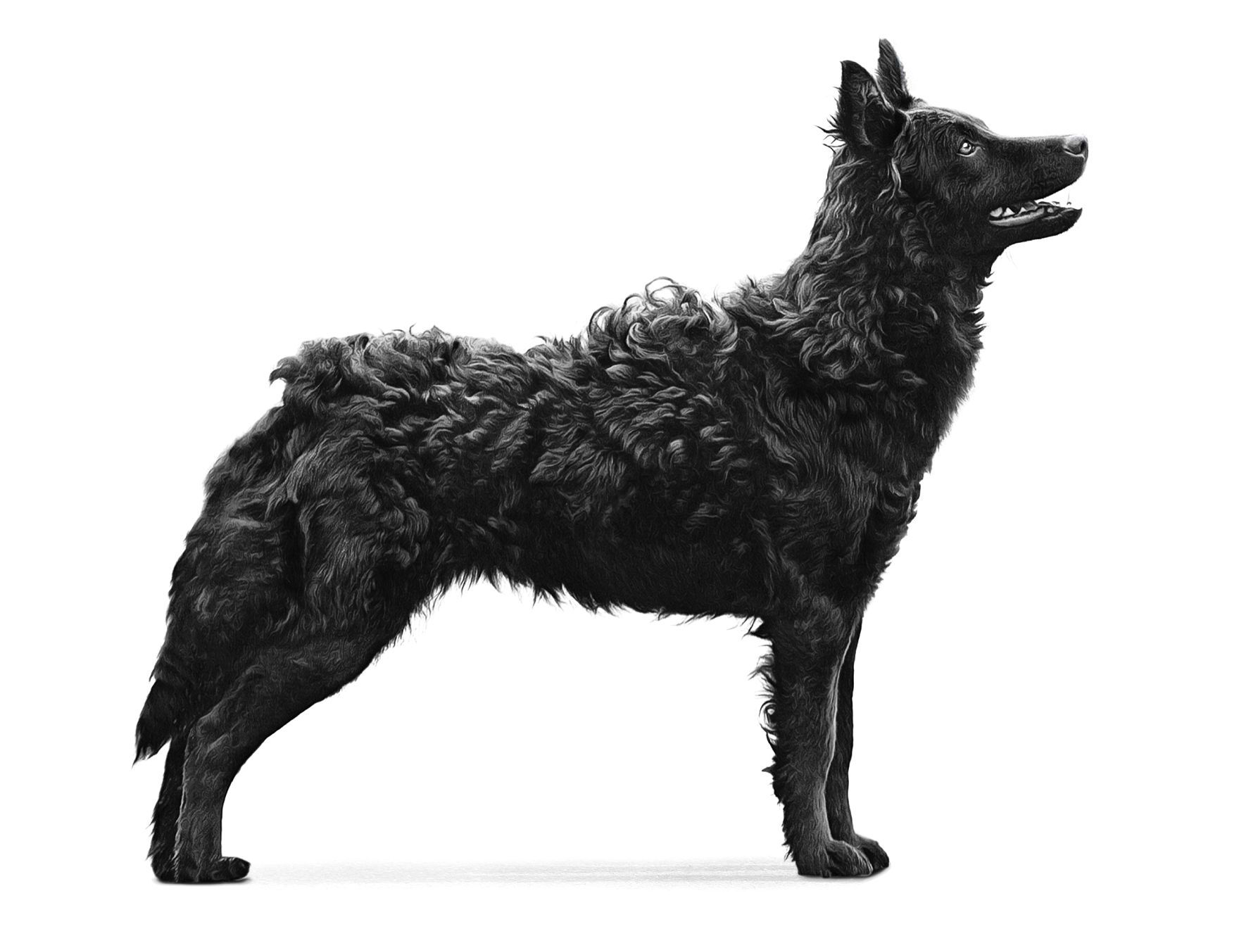 The Mudi has a relatively short, smooth coat on their head and legs, while the rest of their body has a longer, wavy or slightly curled coat. This loving breed can be kept indoors without a problem, and they are endearing family dogs.